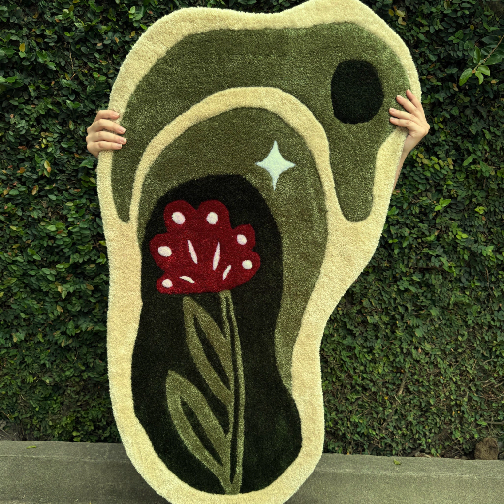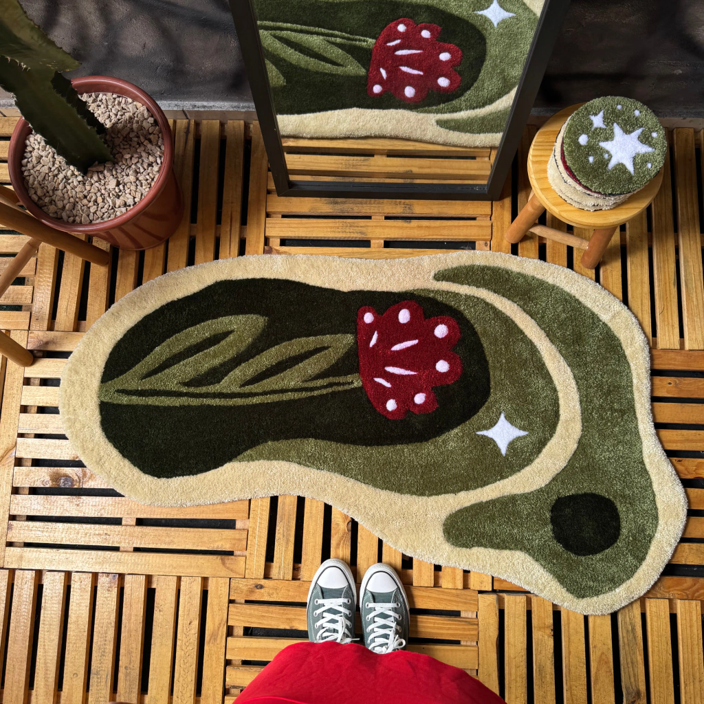 Tapeçaria feita com a técnica tufting, projetada para decorar ambientes com design exclusivo e peças que expressam uma atmosfera lúdica. Pode ser utilizada conforme sua preferência: tapete de chão, de parede, sob móveis, etc. Cada tapeçaria é cuidadosamente confeccionada de forma artesanal utilizando materiais de alta qualidade, com lã sobre tecido 100% algodão, produzido por pequenos agricultores em assentamentos e comunidades da paraíba.